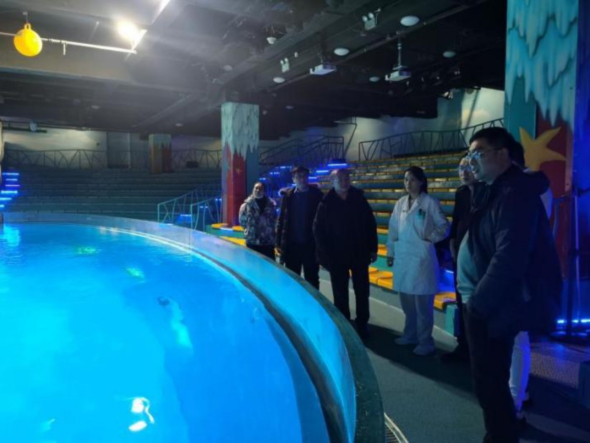 徐世文一行首先向极地公园方面了解了公园运行情况和动物健康状况。随后实地察访公园各个场馆,为动物开展疾病诊断,制定治疗方案,提供健康评估、药物治疗和康复指导等服务。专家团队对动物的健康状况进行了全面的检查评估,涵盖消化系统、呼吸系统、神经系统、免疫系统等方面。对动物体态、体温、心率、呼吸频率等基本指标,对动物的皮肤、毛发、口腔等部位表象特征,对动物的饮食、运动、环境等具体情形进行全面的检查与评估,并找出潜在的健康问题,给出相应的解决方案。先后对海洋哺乳动物如海豚、海象、海狮、海豹等,陆地哺乳动物如北极熊、北极狼等,南极企鹅及南非斑点环企鹅进行了健康状况评估和体况检查。通过检查评估,专家团队发现了一些动物的健康问题。同时对于场馆的动物保护措施进行了勘察、评估、指导。