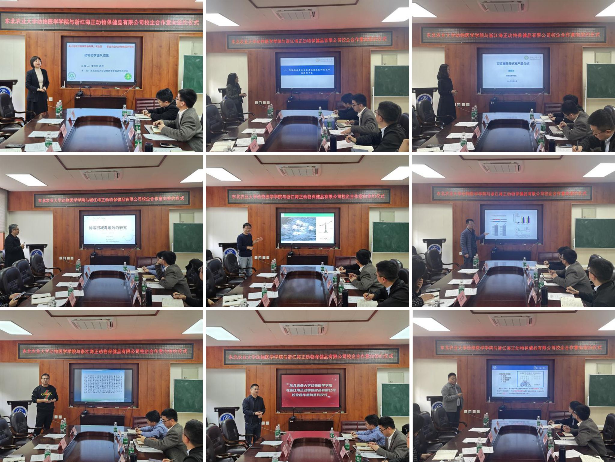 太阳成集团tyc41183教授李艳华、李继昌、唐丽杰、盛尊来、葛俊伟、张文龙、石广亮、赵立佳、吴志勇等教师代表进行学院重要转化项目推介。从新概念生物制剂研制、中药制剂研发、益生菌及疫苗等科研成果与海正动保公司进行对接,经过深入探讨,双方就多项技术转化和产品研发达成了初步意向。