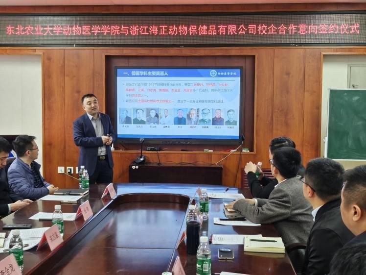 冀伟表示,此次深入交流涵盖研发项目展示及难点讨论,以寻求未来研发突破新方向。面对新时期挑战,要着眼于差异化和特色,包括提高药物生物利用度与减少副作用等方面。未来合作将重点围绕高校前沿技术,探讨人才培养与科研技术成果转化。他表示未来合作的方向包括产品合作以及人才交流,提出了在海正动保建立实习基地、开发项目、毕业生就业等多种合作方式。他期待在传承历史合作的基础上,以此次签约为契机,深化校企双方合作关系,共同开拓动保事业融合发展。