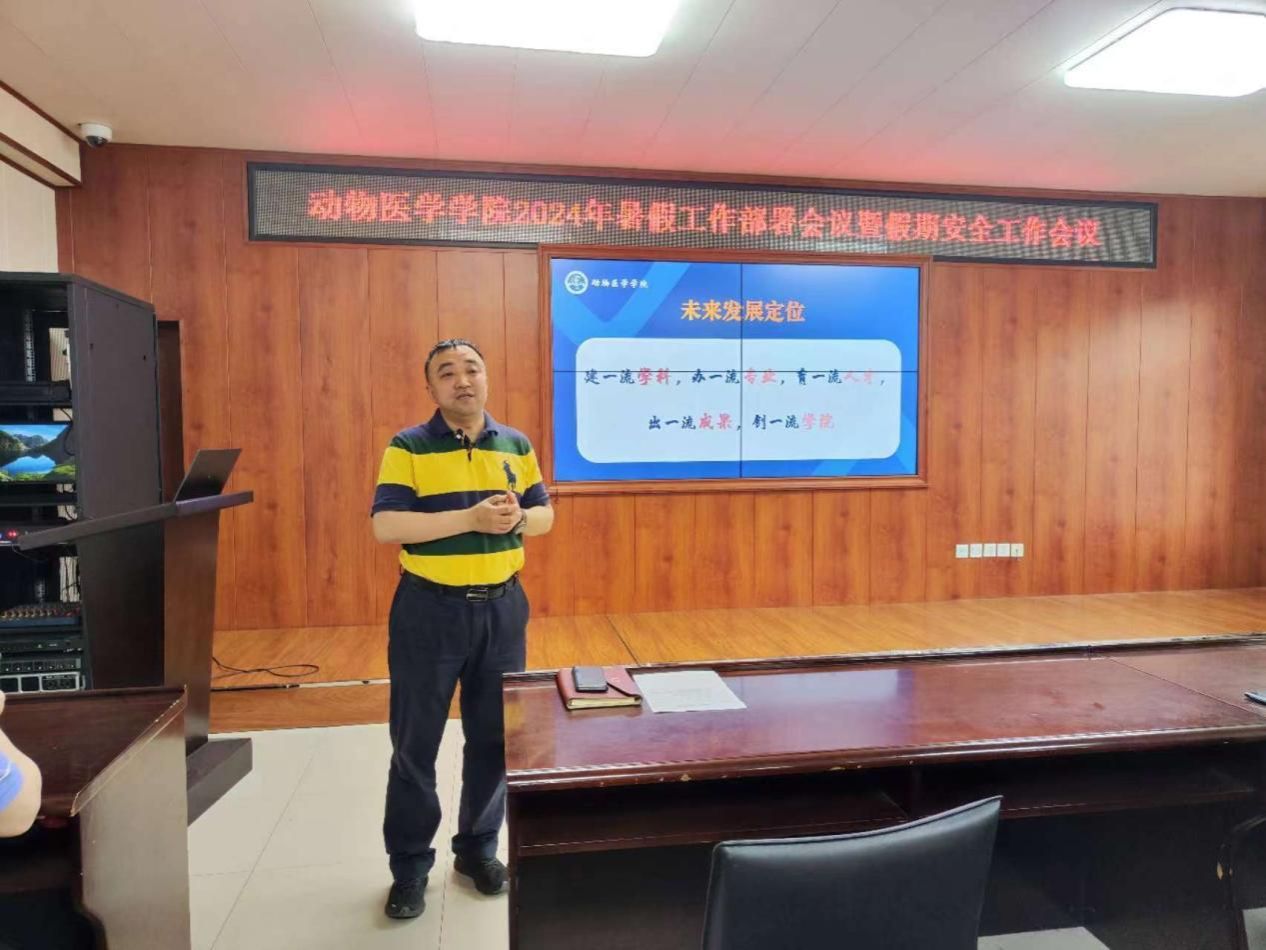 党委副书记赵文和对假期学生管理工作相关工作安排,着重强调学生假期安全教育和管理,扎实做好学生的服务工作,对学校相关规章、制度、要求进行解读。同时,动员学院教师要鼓励、帮助大学生积极参与“三下乡”社会实践和科技创新活动,强调活动要取得新成效和亮点。