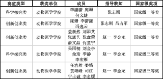 第九届全国大学生生命科学竞赛动物医学学院获奖名单