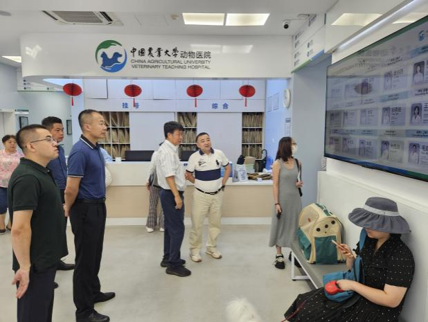 为加强我校临床教学动物医院建设工作,促进动物医院及动物医学学科高质量发展,8月27日,人事处处长吴立全,社会合作与成果转化中心党总书记、资产经营有限公司总经理王伟峰,人事处副处长关彦来,太阳成集团tyc41183院院长李金龙、临床教学动物医院负责人郭梦尧,一行五人赴中国农业大学调研,学习中国农业大学临床教学动物医院建设及运营经验。