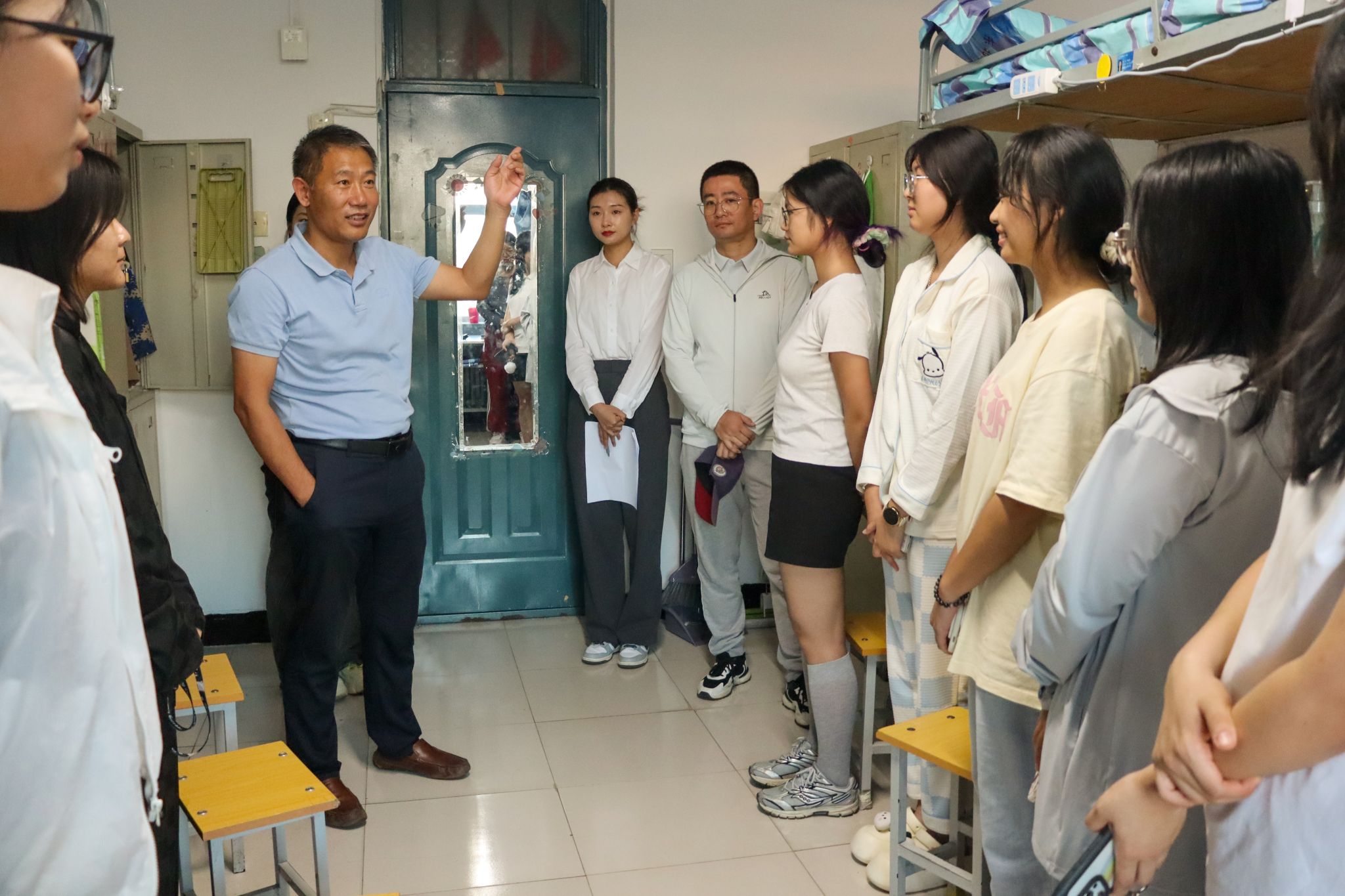 为了解新生报到后的生活及适应情况,帮助新生尽快转变角色,学院领导及辅导员代表于8月30日下午共同走访新生寝室,传递关怀与问候。学院老师们亲切地与每位新生进行了交流,热烈欢迎他们的到来,询问了新生的生源地、高考成绩、所学专业以及未来规划等,并对独立到校报到的新生予以肯定,希望同学们在大学学会独立生活,以饱满的热情和昂扬的风貌开启大学生活。