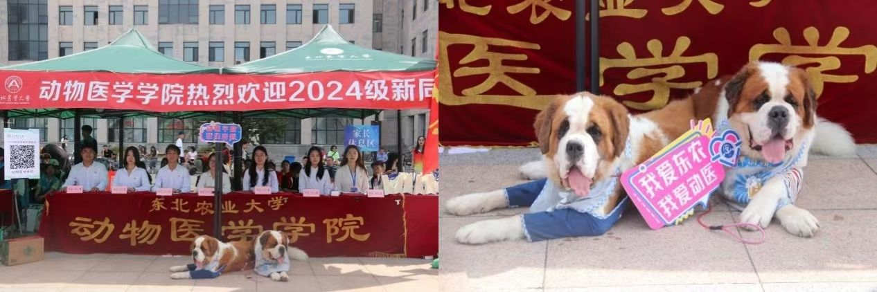 迎新场地划分为三个主要区域:签到区、志愿者服务区及家长休息区。签到区特别设置了迎新宣传展板,并以学院吉祥物“安安”为灵感,设计了拍照打卡点。另外设置看台展示了特色动物、动物模型以及动物手绘解剖图等。同时为每位新成员准备了彰显学院特色的精美文创礼品。志愿者们为新生提供了全方位的迎新服务,从新生抵达校园、办理签到手续,再到搬运行李,努力将迎新服务做到最好。学院还为新生及家长们准备了饮用水、食物、雨衣等必需品,将温暖迎新理念付诸实践,使新生能够迅速融入动医学院大家庭。