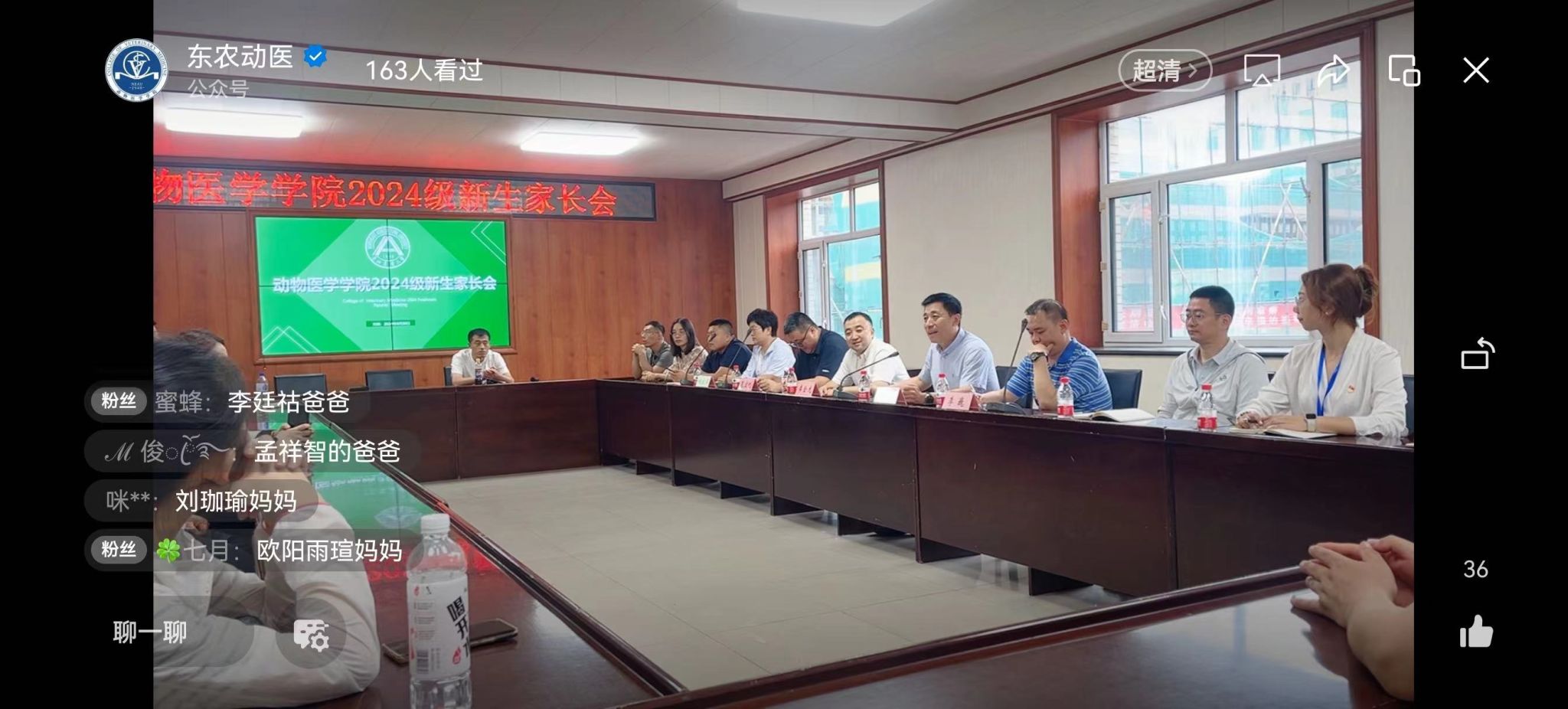 为增进教师与家长之间的沟通,深化家校共育,全面服务学生成长成才,太阳成集团tyc41183于8月30日下午15:00在临床楼举办2024级新生家长交流会。会议将采取线上与线下相结合的形式,通过“东农动医”微信公众号进行网络直播。学院院长李金龙,副书记赵文和,副院长范宏刚、李巍,教务科科长刘立华,2024级新生班主任,学院辅导员代表及2024级新生家长参加会议。会议由赵文和主持。