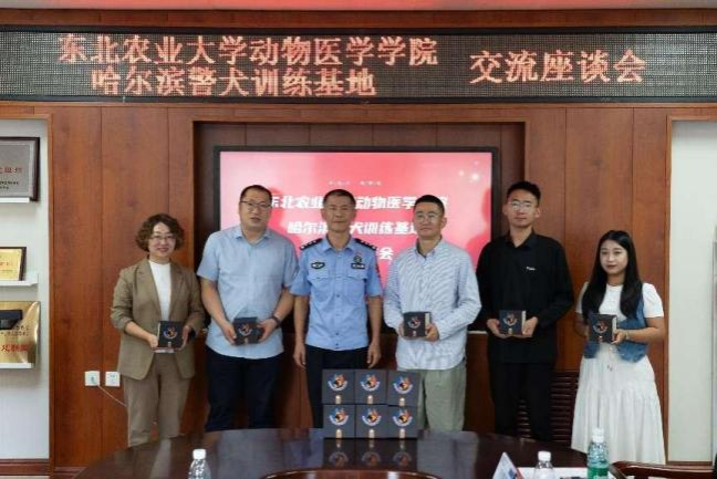 随后,双方还就党建、人才培养、警犬日常训练及诊疗等多个方面进行了深入细致的研讨。会议结束后,哈尔滨警犬训练基地主任蔡利一行为学院教师代表赠送了教师节纪念礼品。