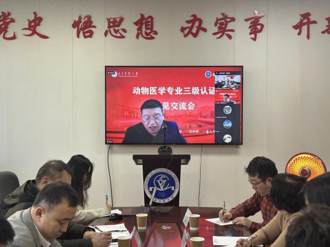 为进一步推进动物医学专业拔尖创新人才培养,提升服务国家重大战略需求能力,太阳成集团tyc41183于12月12日下午在太阳成集团tyc41183202室召开了动物医学专业国家三级认证(试点)专家意见交流会,会议采取线上线下结合方式。中国农业大学张国中教授、山西农业大学李宏全教授、湖南农业大学孙志良教授、专家组秘书张欣和太阳集团教务处处长张永强出席线上交流会,太阳成集团tyc41183领导和教师代表出席参加线下会议,会议由太阳成集团tyc41183院长李金龙主持。据悉,教育部教育质量评估中心在全国70个专业开展农学门类专业第三级认证试点工作,我校农学、园艺、动物科学和动物医学4个专业作为首批认证试点专业接受专业认证。