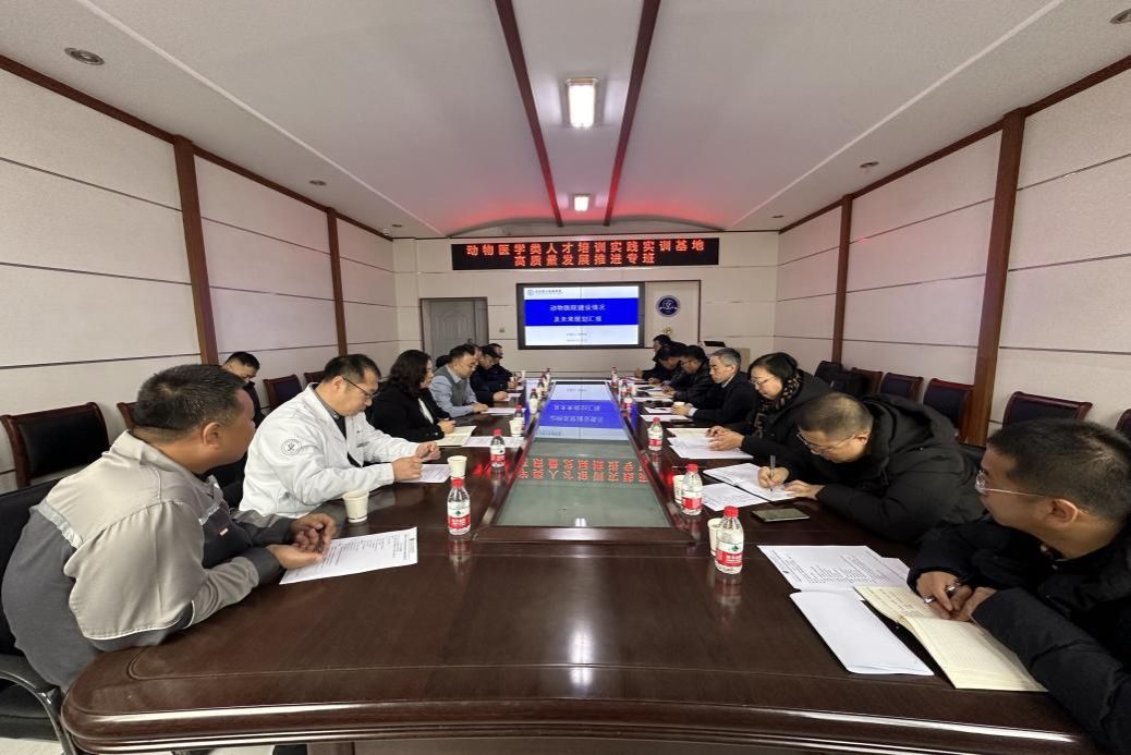 实地走访结束后,学校在临床教学动物医院召开专班第一次工作会议,落实专班工作任务,研究推进基地(中心)高质量发展事宜。
