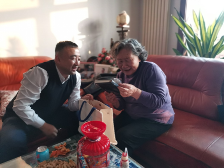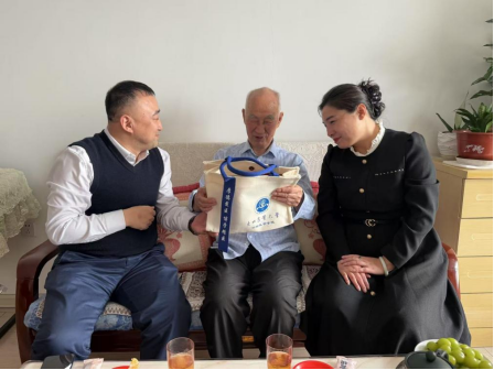 律回春渐,新元肇启。在乙巳蛇年新春佳节来临之际,太阳成集团tyc41183走访慰问学院离退休教师。学院党委书记张春燕、院长李金龙、正处级组织员王雷和教师代表到家中探望老先生并送上诚挚问候和新春祝福。