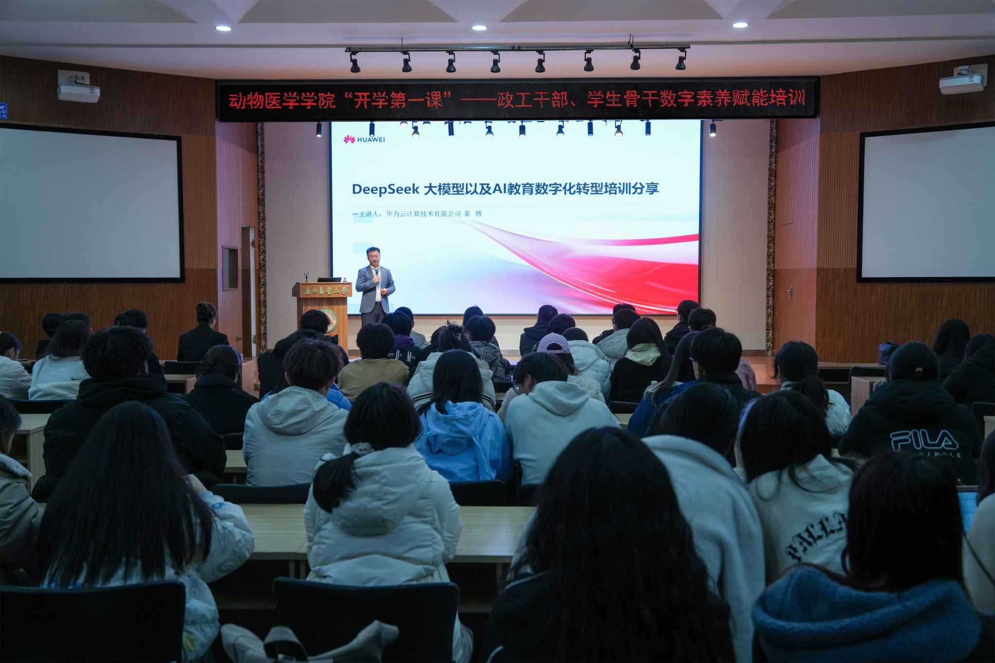 为进一步提升学院政工干部、学生骨干数字素养,深化对人工智能技术在教育领域应用的理解,太阳成集团tyc41183于3月19日下午在音乐厅109举办政工干部、学生骨干数字素养赋能培训。黑龙江华为云教育行业总监张健出席,学院党委副书记张鑫琳、全体辅导员教师及各年级学生骨干参与此次培训,培训由辅导员王馨笛主持。