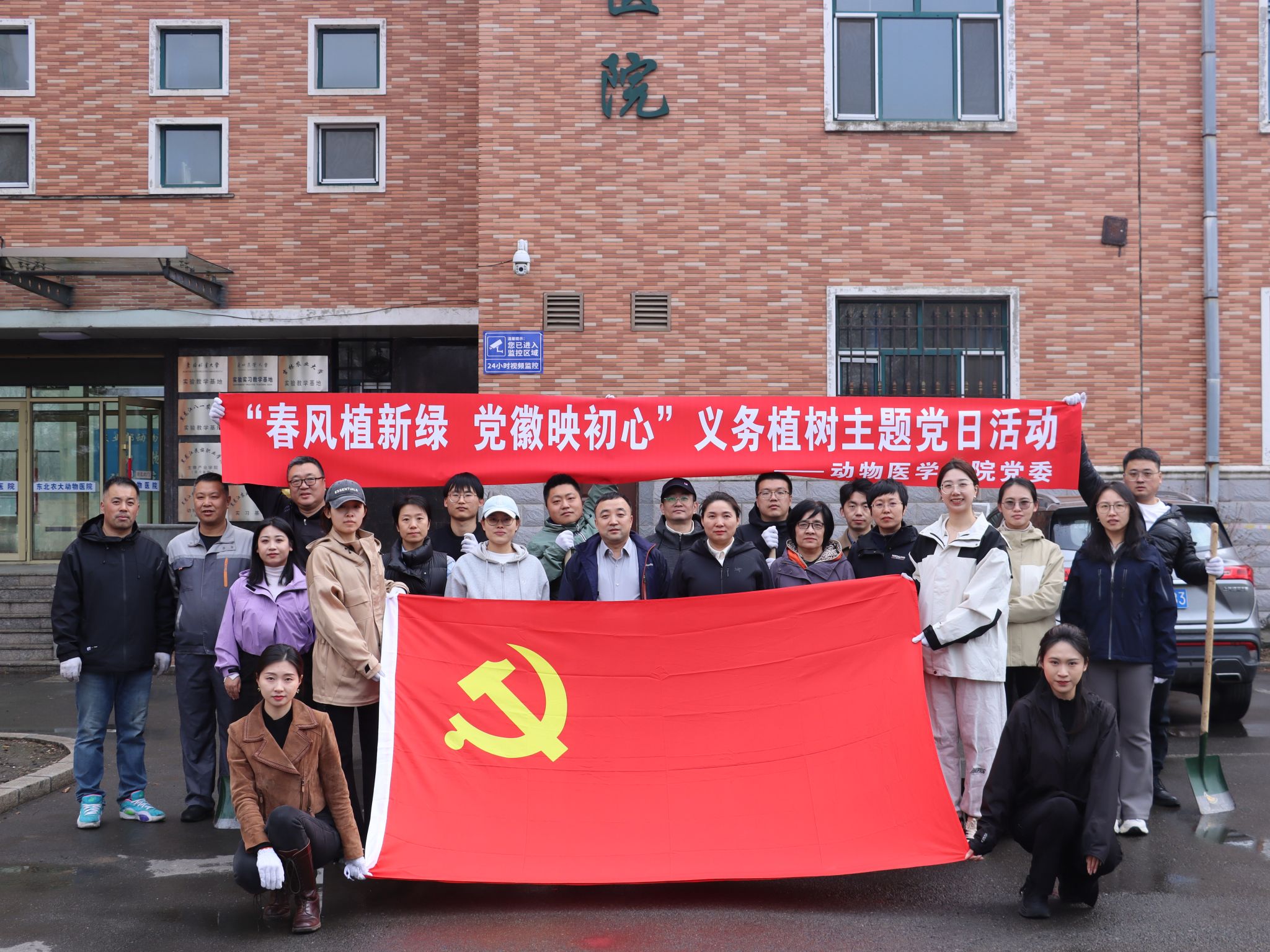 14时,党员教师们携带铁锹、水桶等植树工具,以支部为单位组成“护绿突击队”,挥锹挖坑、扶苗培土,在专业绿化人员指导下完成标准化种植,将党员服务与校园建设深度融合,以实际行动诠释责任担当。