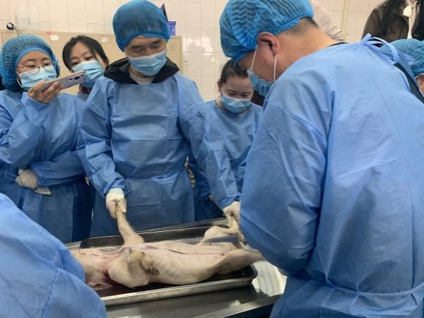 本次培训特别设置了剖检实操课程,包括动物剖检、病料采集、病变识别和疾病诊断,由内蒙古农业大学王金玲老师负责教学。在实操课程中,王金玲老师凭借丰富的实践经验,从动物剖检的前期准备工作开始,为学员们详细讲解每个步骤的要点和注意事项。在病料采集环节,他亲自示范正确的采集方法,确保学员们掌握规范操作。在病变识别和疾病诊断部分,王老师引导学员们仔细观察动物组织器官的病理变化,结合所学理论知识,分析病变产生的原因和可能引发的疾病,提升了学员们病理诊断能力。