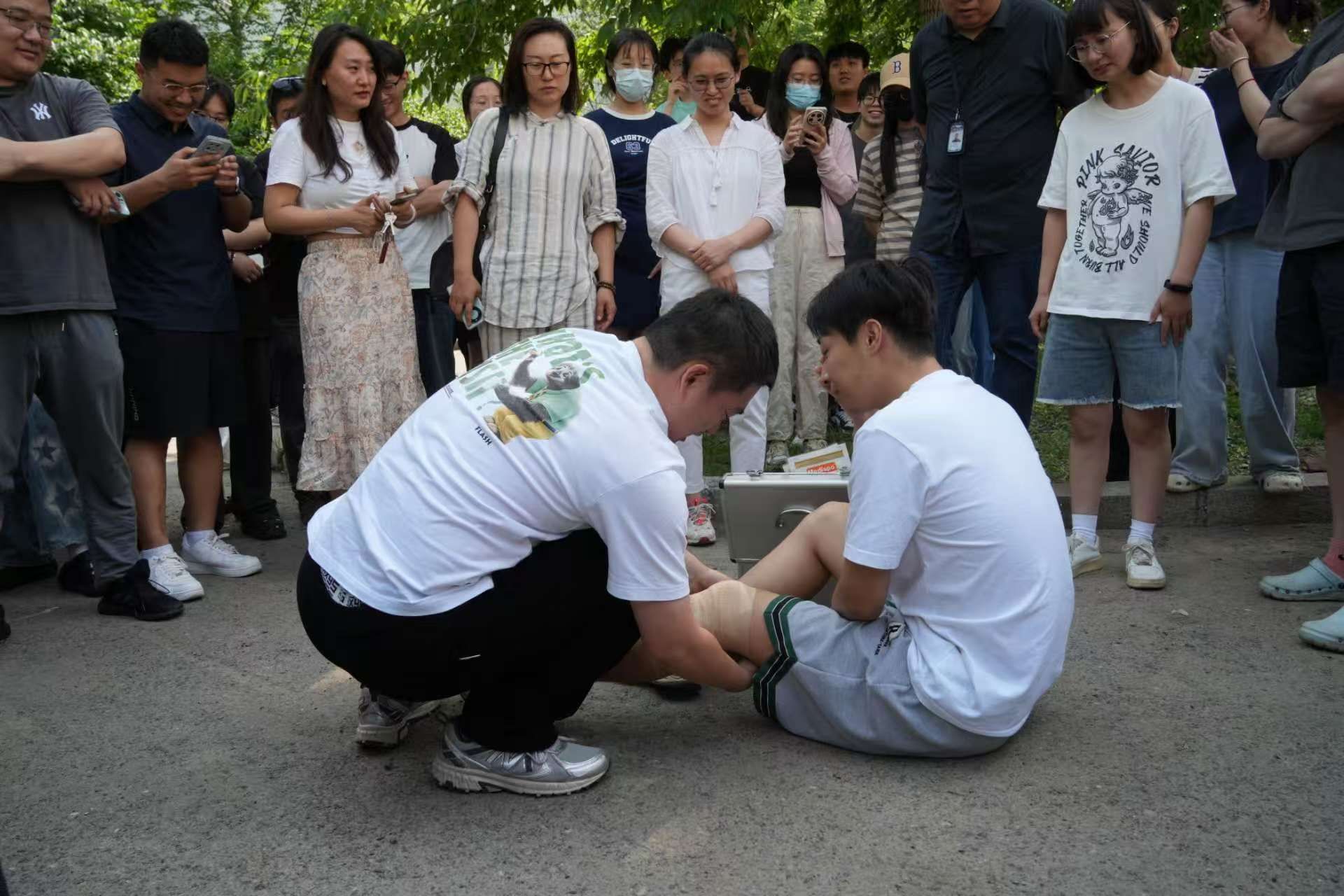 受伤学生现场包扎