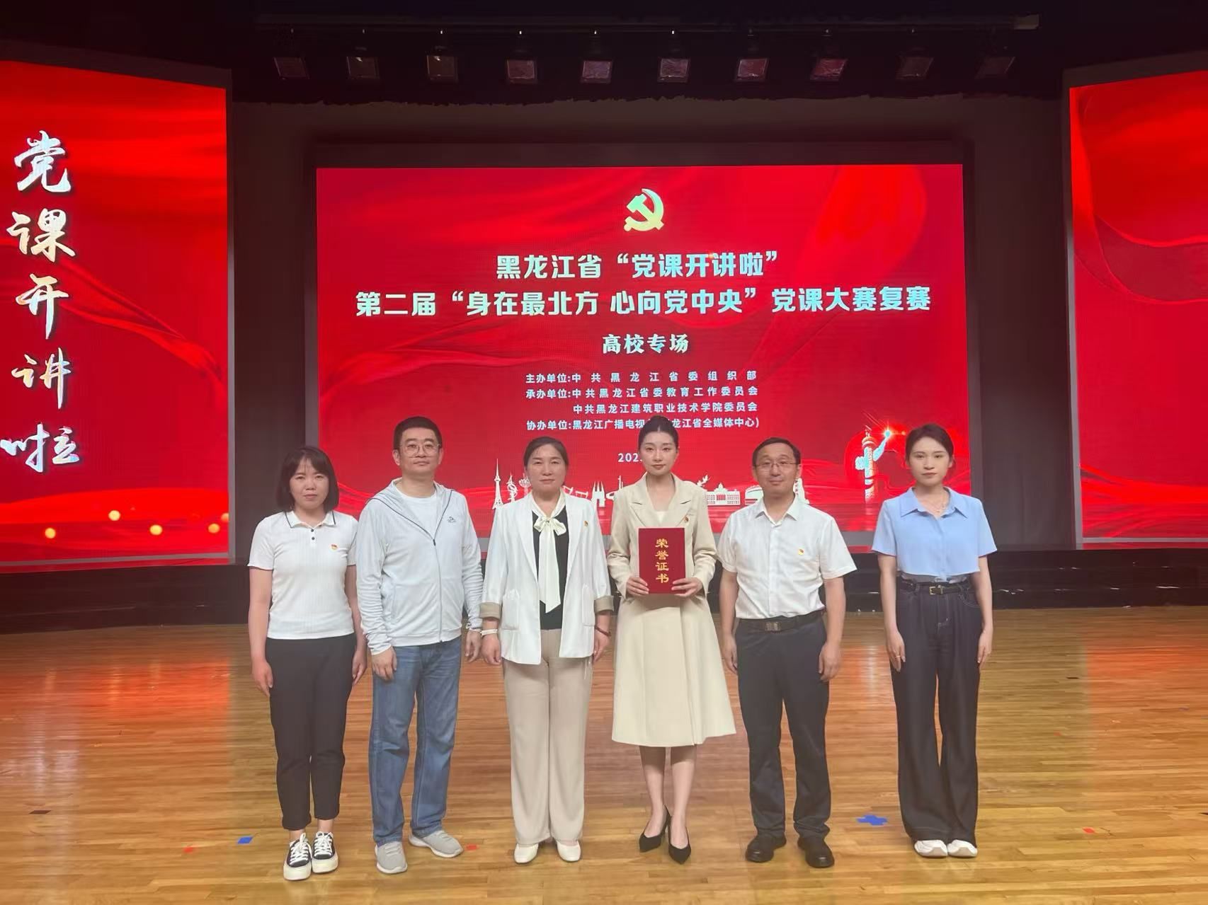 6月19日下午,由中共黑龙江省委组织部主办,黑龙江省委教育工委、黑龙江建筑职业技术学院承办,黑龙江广播电视台协办的第二届全省“身在最北方、心向党中央”党课大赛高校专场复赛暨第二届全省高校“身在最北方、心向党中央”党课大赛决赛在黑龙江建筑职业技术学院隆重举行。我院学生党支部书记李佳琦主讲的党课《攥紧中国种 守护“龙江芯”》荣获二等奖。