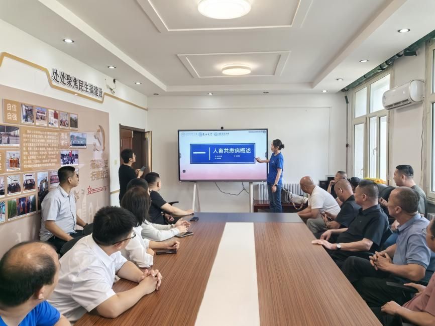 走访结束后,实践团到双城区青岭乡政府办公室召开了座谈会,青岭乡乡长付宇初、副书记马萍,当地各村支部书记参加会议。会上,我校博士生王嘉欣进行人畜共患病知识宣讲,宣讲结束后,农户与博士生就畜禽养殖展开了深入的探讨与交流,并一致同意未来在乡镇与高校之间,围绕社会实践、技术交流及实际问题解决等方面开展广泛持续的交流与合作。青岭乡政府领导表示,通过这个合作的平台,能直接对接高校的先进技术和养殖理念,一些棘手的养殖问题可以迅速找到破解的办法,从而更加坚定养殖户的信心,对促进乡村振兴发展和农民增收致富起到了积极作用。