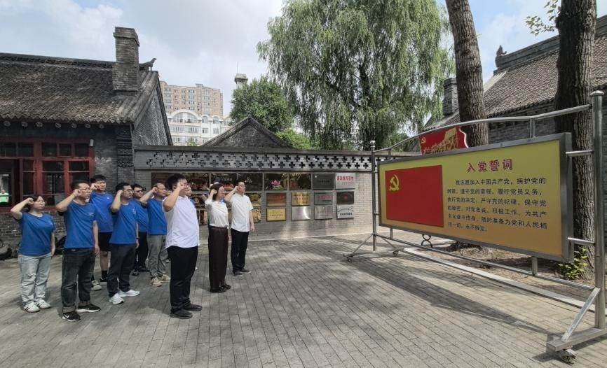 活动伊始,一行人参观了“第四野战军前线指挥部旧址”,在讲解员的引领下,实践队员们深刻学习了革命先烈们不惧艰难险阻、英勇斗争的辉煌历史,使同学们深受革命精神的洗礼。参观活动结束后,全体党员庄严地重温入党誓词,开展了一次富有教育意义的主题党日活动。