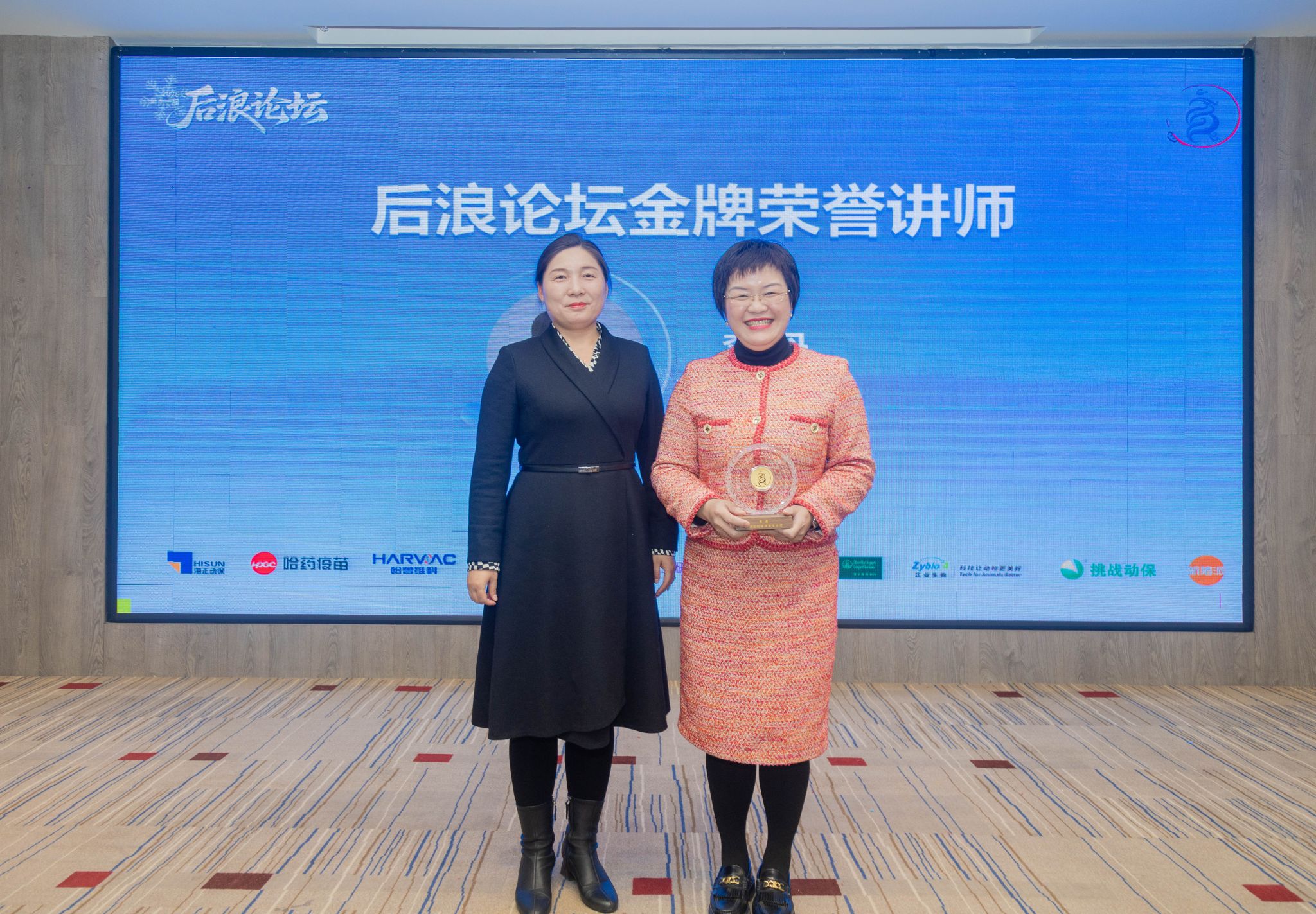 我校太阳成集团tyc41183党委书记张春燕代表论坛组委会,为《新猪派》主编李丹颁发“后浪论坛金牌荣誉讲师”荣誉证书及奖牌,以表彰其在生猪疫病防控、健康养殖技术等领域的知识传播与行业引领中的突出贡献。