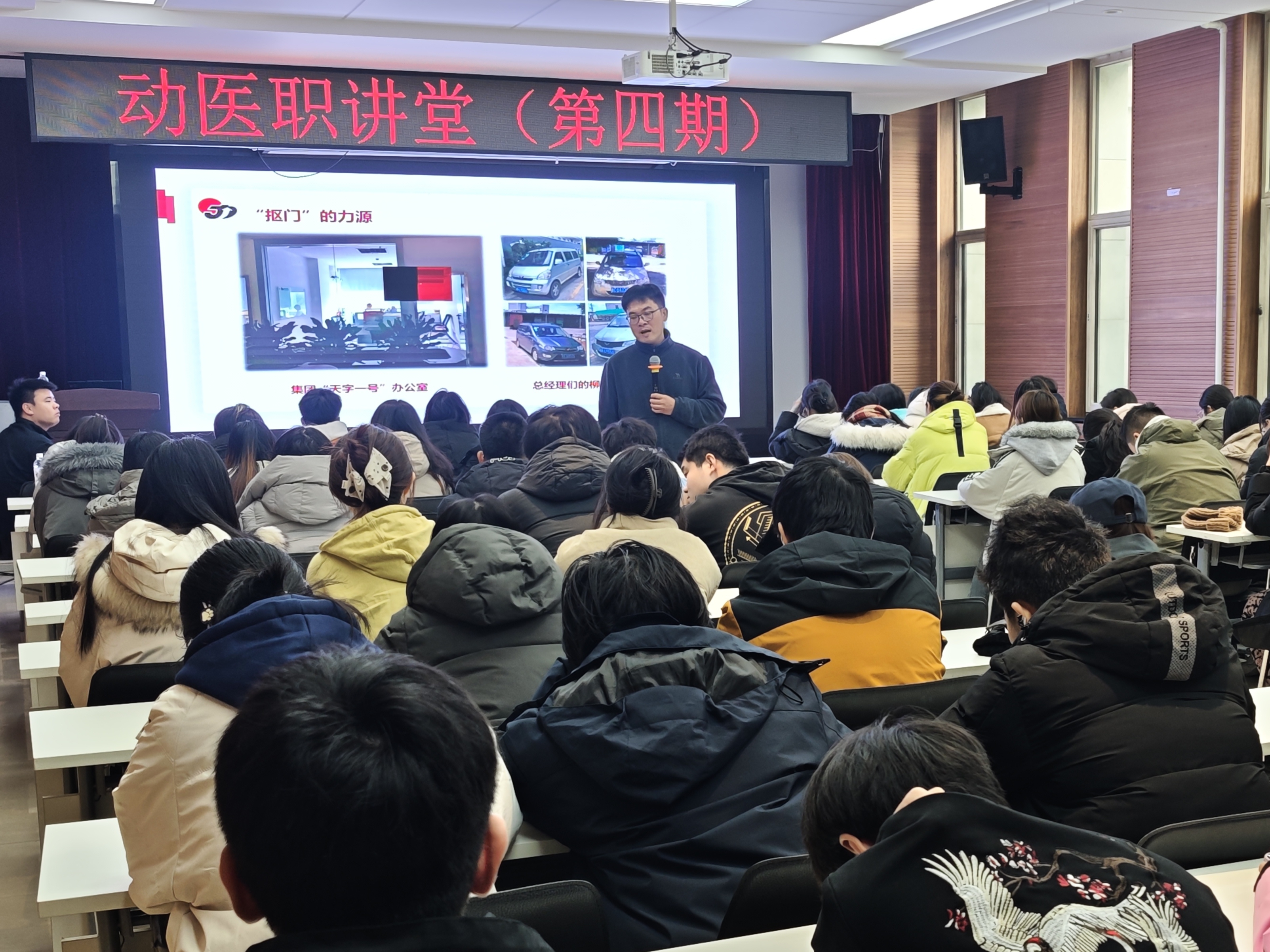 第四期职讲堂邀请到桂林力源集团种猪生产兽医负责人莫玉鹏总监担任嘉宾。他通过分享企业优秀青年兽医的真实成长路径,生动阐述了理论与实践相结合的重要性,强调扎实的专业功底与持续学习能力是职业发展的基石。互动环节中,同学们围绕技能提升、招聘需求等踊跃提问,现场气氛热烈。