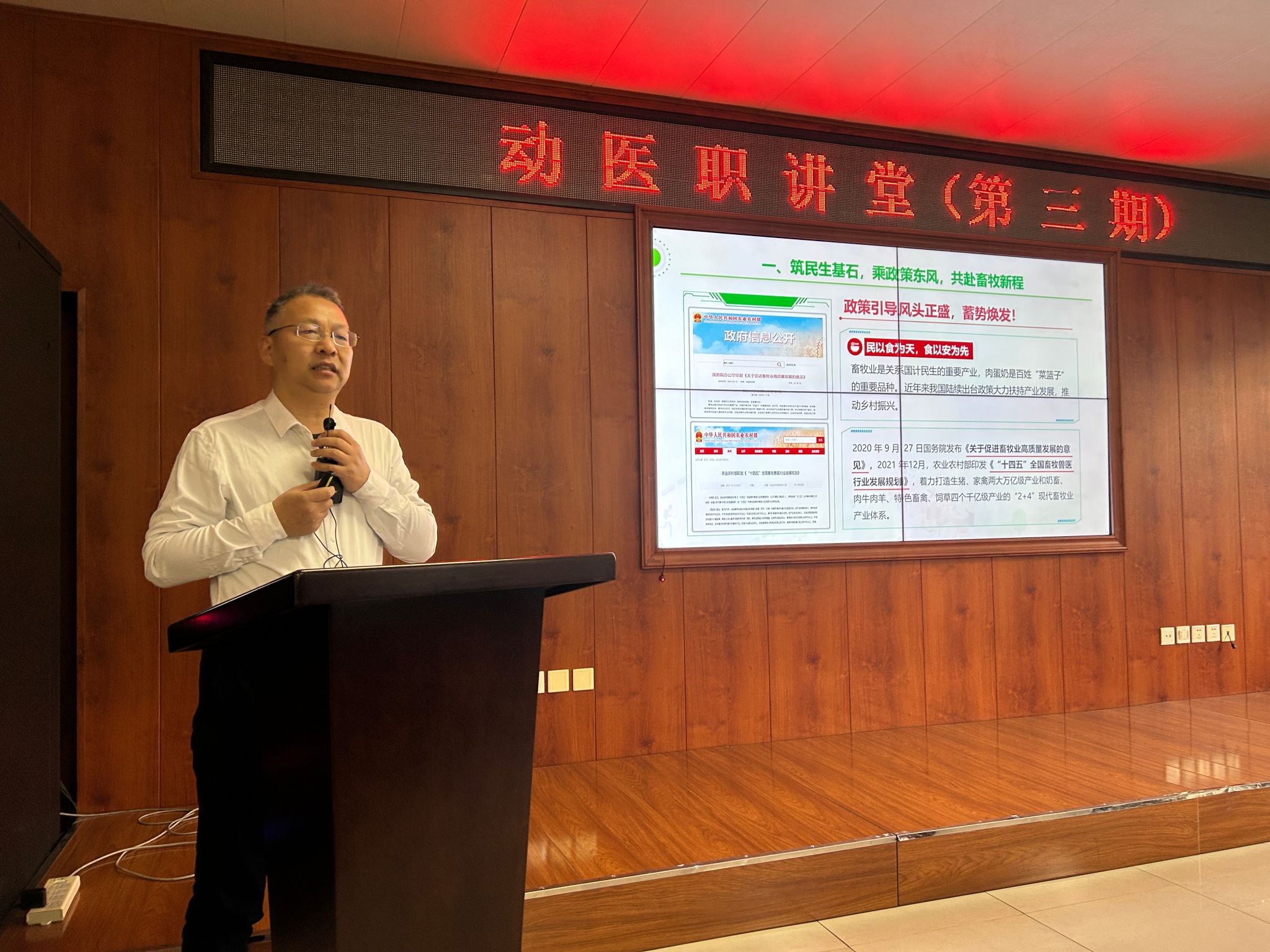 系列活动中,学院先后举办多期“动医职讲堂”。第三期特邀温氏集团总裁助理、技术部(研究院)副部长王连想担任主讲。他以“牧心逐梦向未来,青春建功在养殖”为主题,深入剖析了畜牧业在规模化、智能化、生态化转型中的新机遇,指出疫病防控、数字化技术等领域已成为行业人才的核心刚需,鼓励同学们夯实基础,投身产业一线实现价值。