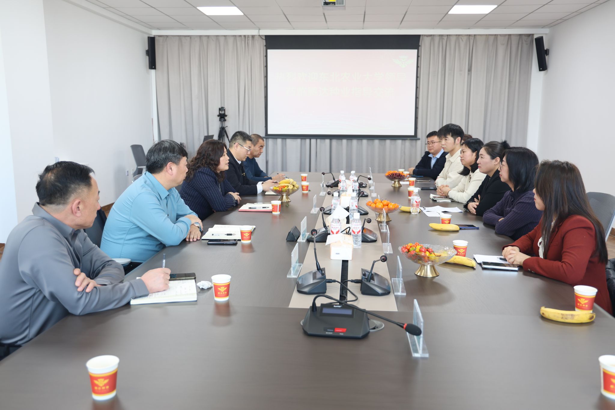在哈尔滨鹏达种业有限公司,学院一行与尚志市副市长郭海波、鹏达种业副总经理谭首宇、管理副总郑广文、市农业农村局王宪宝、鹏达种业生产负责人景喜全座谈交流。郭海波对学院一行表示欢迎,充分肯定了学院在师资建设与人才培养方面取得的成效,并介绍了尚志市农牧产业发展现状及鹏达种业未来规划。张春燕介绍了学院学科建设、科研方向及毕业生情况,希望与企业共建合作平台,实现资源共享、互利共赢。张鑫琳重点推荐了两名优秀毕业生,表示学院将持续推进就业指导与服务,积极搭建校企对接桥梁。随后,双方围绕企业需求与研究方向进行了深入研讨。冷丽副教授作为鹏达种业的长期指导专家对种鸡在养殖中遇到的问题给予了精准指导;王颢然副教授围绕智慧兽医学方向,详细介绍了基于人工智能等现代信息技术实现对种鸡疾病的诊断、监测与精准预警,为提升鹏达现代化养殖水平提供了智力支持;姚玉杰副教授围绕畜禽重要传染病、营养代谢病发病机制与综合防治等方面问题与企业进行了深入探讨。学生也逐一进行自我介绍,与企业面对面交流,现场气氛融洽,互动深入。