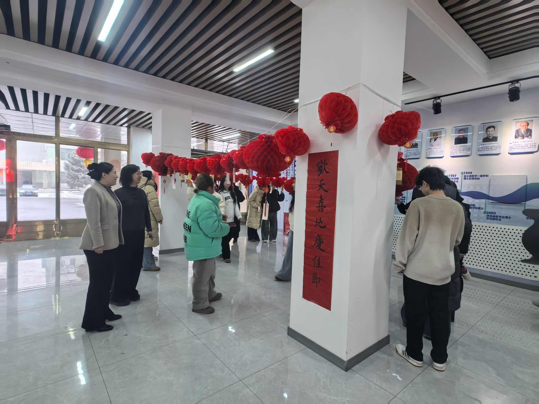 本次灯谜由学院师生亲手书写,悬挂于灯笼之下,形式别致、内容多样。谜题紧扣动物医学专业特色,结合校园生活实际,同时涵盖汉字猜谜、成语典故、民俗常识等传统元素,充分彰显“文化+专业”的融合育人理念。猜中谜底者纷纷前往兑奖区领取精美小礼品,欢声笑语不断,现场洋溢着浓厚的节日气氛。