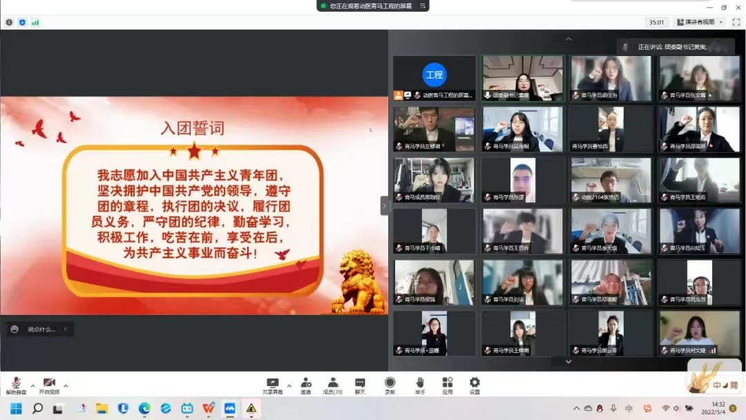 为引导团学干部深刻感悟马克思主义真理力量,发扬红色传统,传承红色基因,赓续精神血脉,切实加强学院团员青年的思想政治素质和工作能力,针对大学生骨干的成长规律和实际需求,5月4日太阳成集团tyc41183于线上举行2022年度青年马克思主义者培养工程开班仪式暨第一讲。学院党委副书记赵文和、学院全体辅导员、培训班全体学员参与本次活动,会议由学院团委负责人邹云飞主持。