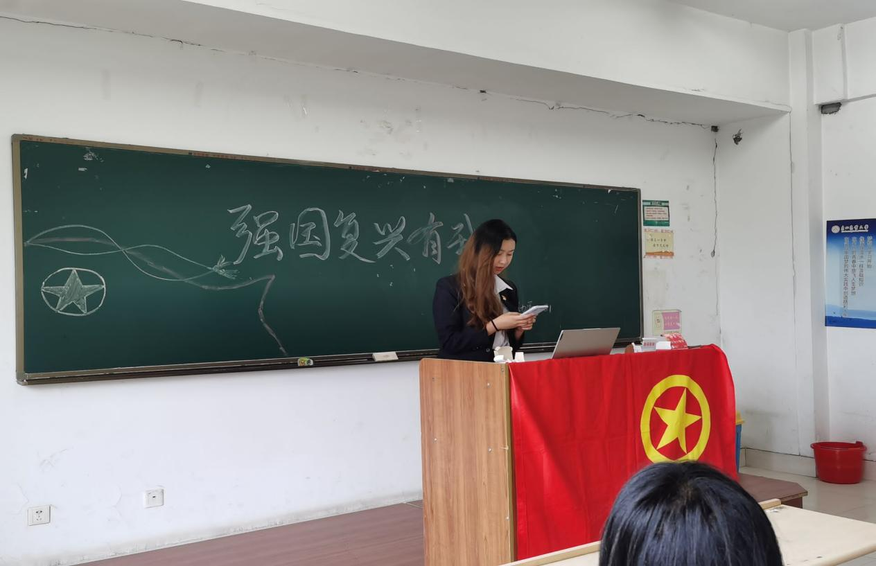 主持人带领同学们齐唱团歌,主持人组织同学进行团课学习,同学们与主持人积极互动,