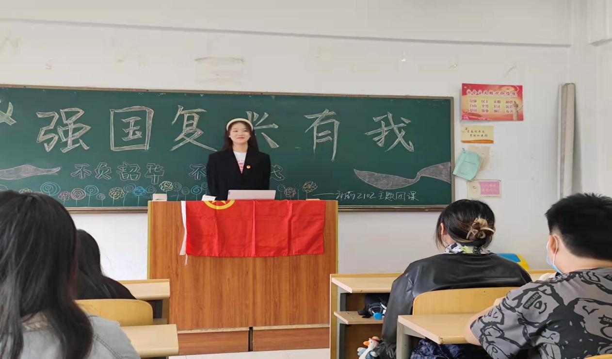 主持人为同学们讲解团课的主要内容,并带领同学们深刻了解团课的主要内容。青年大学生要以习近平新时代中国特色社会主义思想为指导,深入领会“两个确立”的决定性意义,增强“四个意识”,坚定“四个自信”,做到“两个维护”,始终在思想上政治上行动上同党中央保持高度一致。