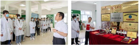 郝敬友首先带领老师和学生参观了绿达生动物药业有限公司的展厅,向师生简要汇报国内外兽药行业发展的现状和趋势、绿达生的企业现状及发展规划,为师生介绍临床常用的中兽药、抗寄生虫药以及临床上常用的药物剂型。随后,郝敬友陪同全体师生进入制药车间进行参观交流,观摩药物制剂生产的全过程以及药物的检验检测及技术要求等。