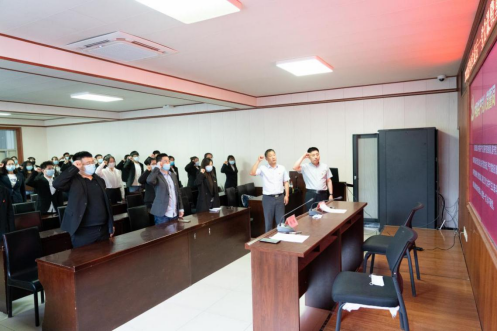 5月25日上午,太阳成集团tyc41183在临床楼215举办“2022届毕业生党员最后一堂党课暨重温入党誓词”活动。学院党委书记张铁、学院全体辅导员、毕业班党员代表参加活动,活动由学院党委副书记赵文和主持。