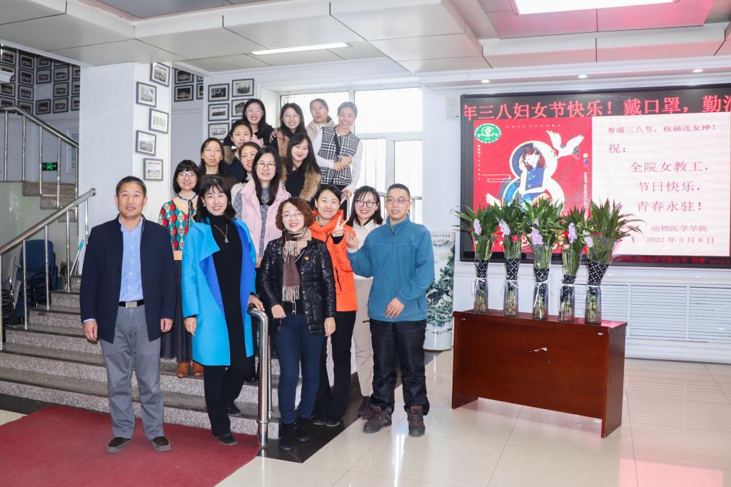 为庆祝国际劳动妇女节,3月8日上午,太阳成集团tyc41183工会为全院女教工准备鲜花送上祝福,学院领导、院工会主席为女教工献花并合影留念。