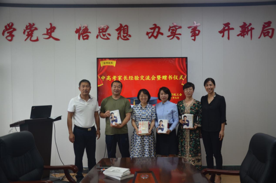 会上,学院领导为我院中高考考生家长赠送图书,与会人员亲切合影留念。