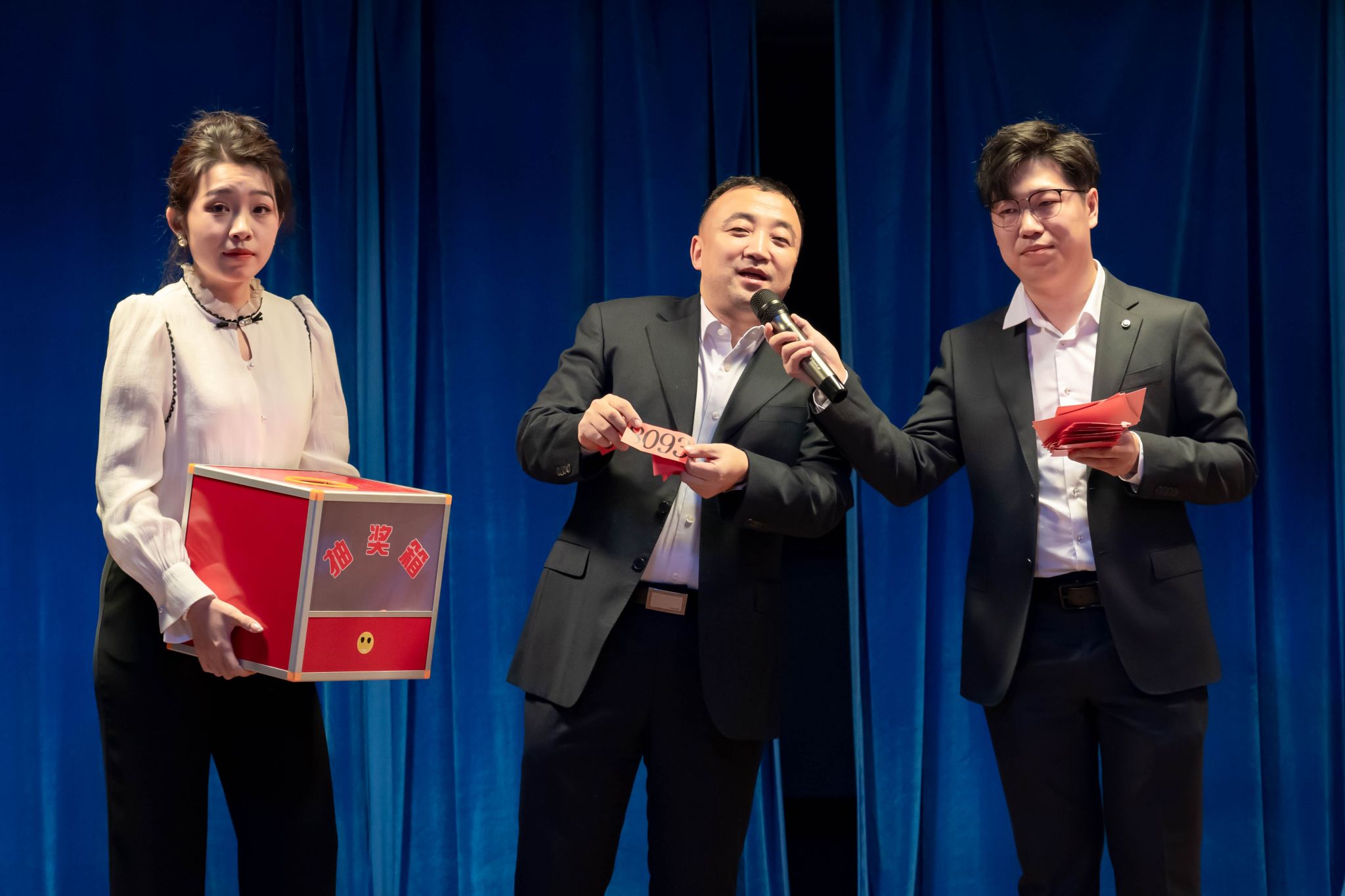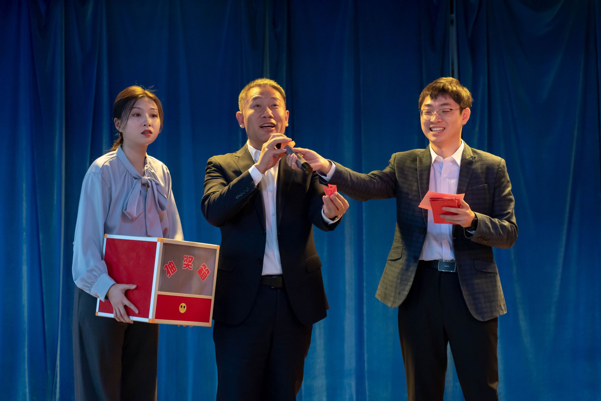 节目期间设游戏环节和抽奖环节,大家参与踊跃,现场气氛热烈。