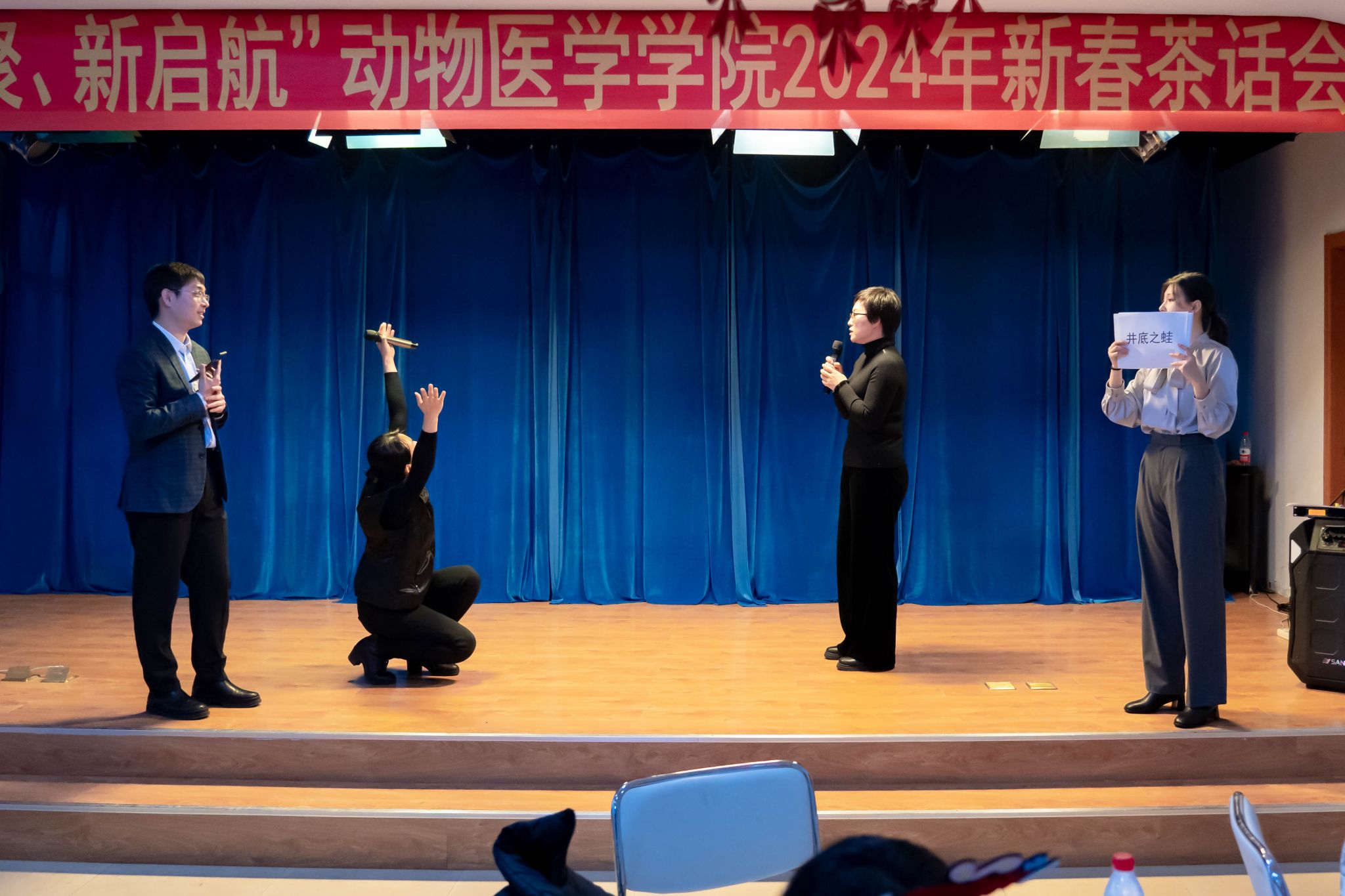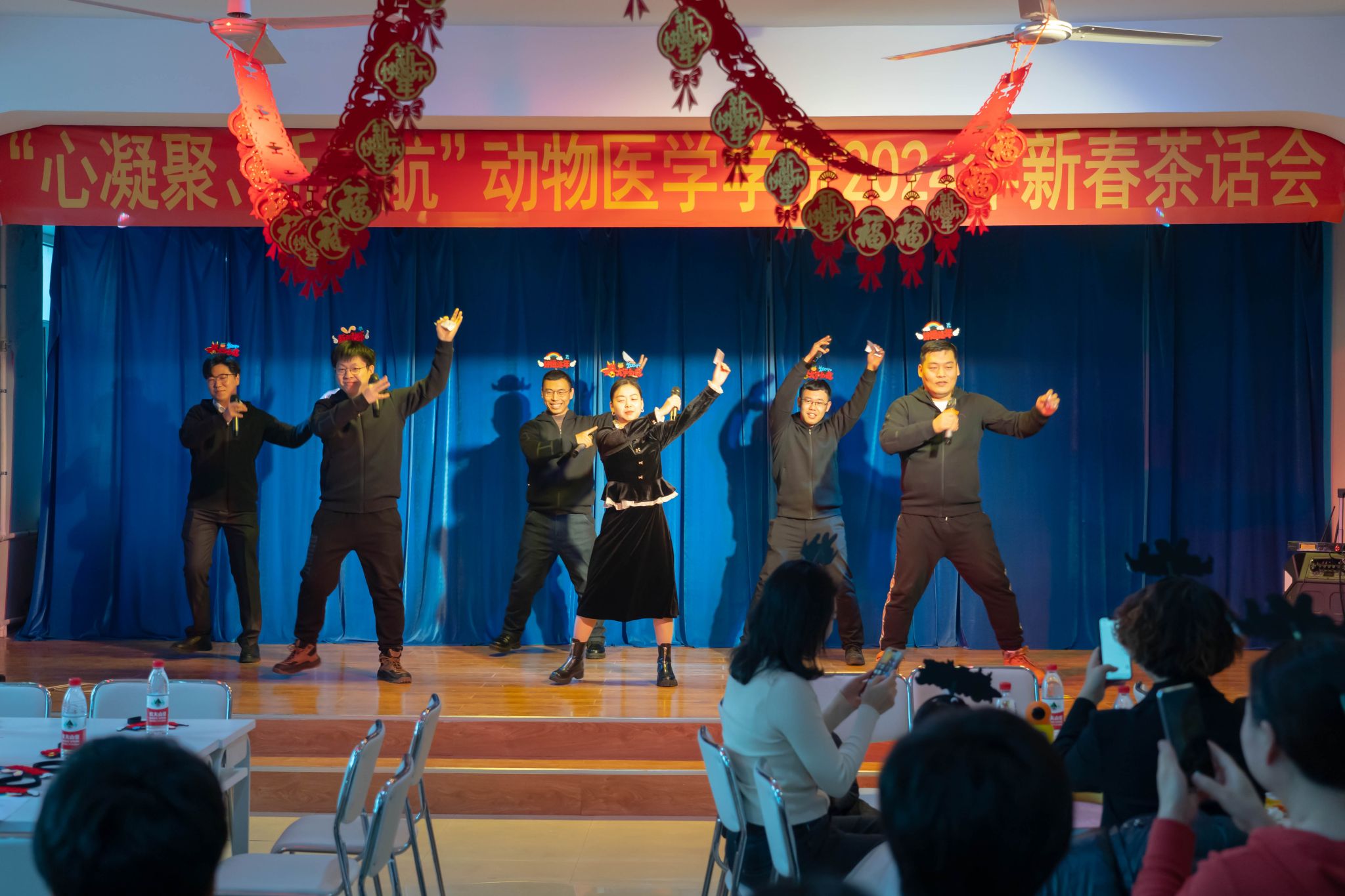 学院工会各小组表演的节目精彩纷呈,基础兽医系小组青年教师刘宁、常轶聪、蔡敬增、李亚楠、魏冕、赵一合唱《教师阵线联盟》;临床教学医院小组教师代表乔茂强独唱《奔跑》;动物药学系小组青年教师郑雅丹、徐童、迟倩茹、包佳鑫合唱《霓虹甜心》;预防兽医系小组全体教师合唱《真心英雄》、走秀《小巴黎时装秀》;女教师代表李艳华、李继昌、刘云、李艳飞、唐丽杰、刘芳萍、李术、乔薪瑗、姜晓文、张瑞莉联唱《女人花+歌唱祖国》。文艺表演展示了学院教师风采,点燃了全场气氛。茶话会在轻松愉悦、欢乐祥和的氛围中进行。