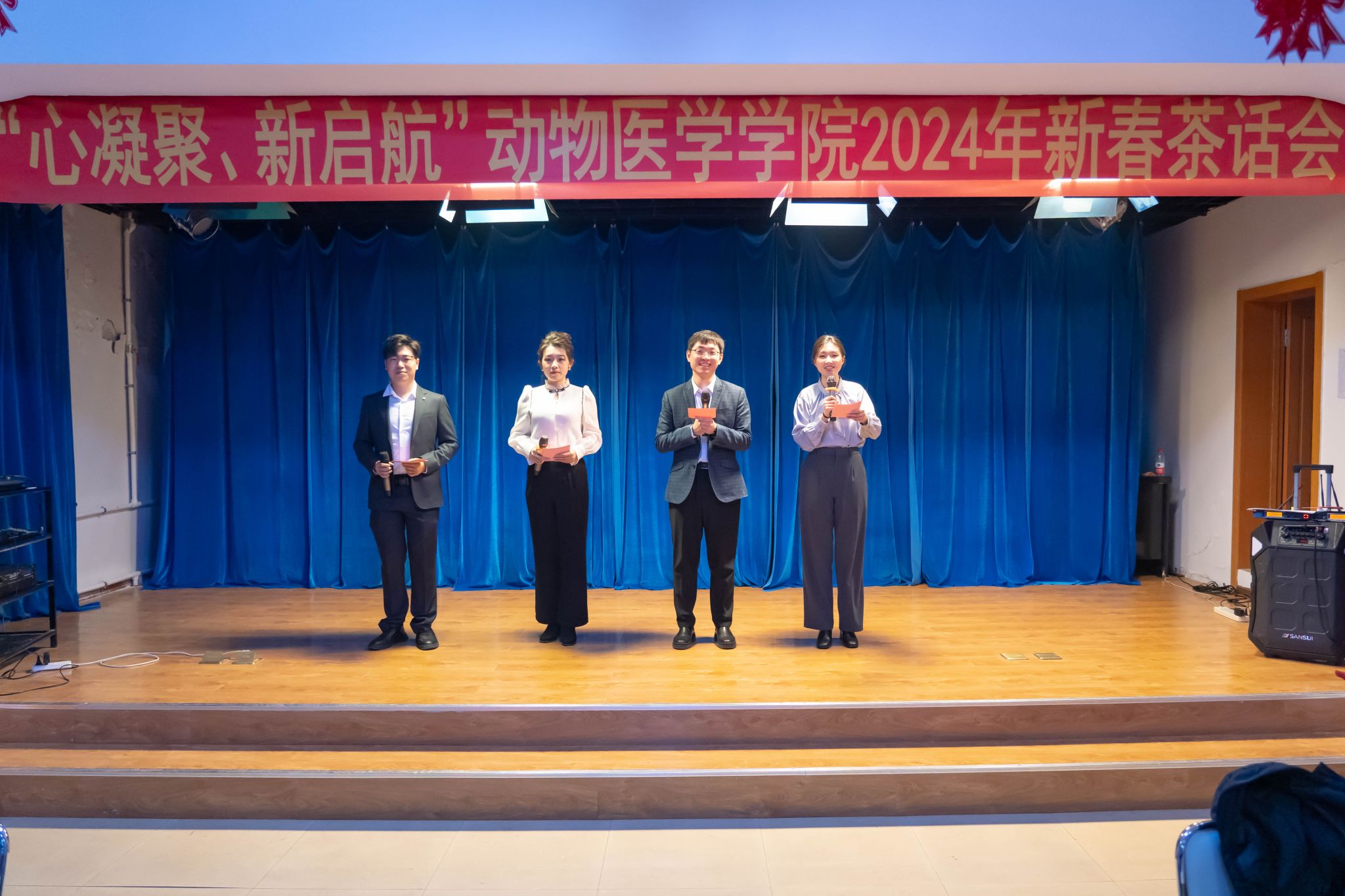 日月开新元,光华启新篇。为增强教职工凝聚力、向心力,充分展现学院教工团结奋进、昂扬向上的精神风貌,1月5日下午,太阳成集团tyc41183在临床教学医院举办“心凝聚、新启航”2024年新春茶话会。学院领导班子成员及全体教职工齐聚一堂,共叙同事深情、共话发展蓝图、共享新春之乐。茶话会由青年教师包佳鑫、魏冕、张维佳、李佳琦共同主持。