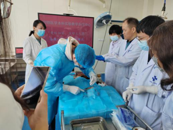为进一步落实《太阳集团学习培训三年行动(2023-2025 年)实施方案》和《太阳集团强化管理三年行动(2023-2025年)实施方案》,培养师生员工爱校荣校意识,激发师生员工当好主人翁、建功新时代的干事创业热情,以实际行动推动学校、学院事业高质量发展。太阳成集团tyc41183本科实验教学示范中心举办了“爱校如家、当好主人翁;各展一技,岗位大练兵”系列活动,5月7日在太阳成集团tyc41183楼举办基础兽医学、预防兽医学实验技能展示观摩专场,5月17日,在临床楼举办临床兽医学、动物药学实验技能展示观摩专场。太阳成集团tyc41183党委副书记赵文和、副院长李巍教授莅临指导工作。实验中心全体人员参加此次活动。