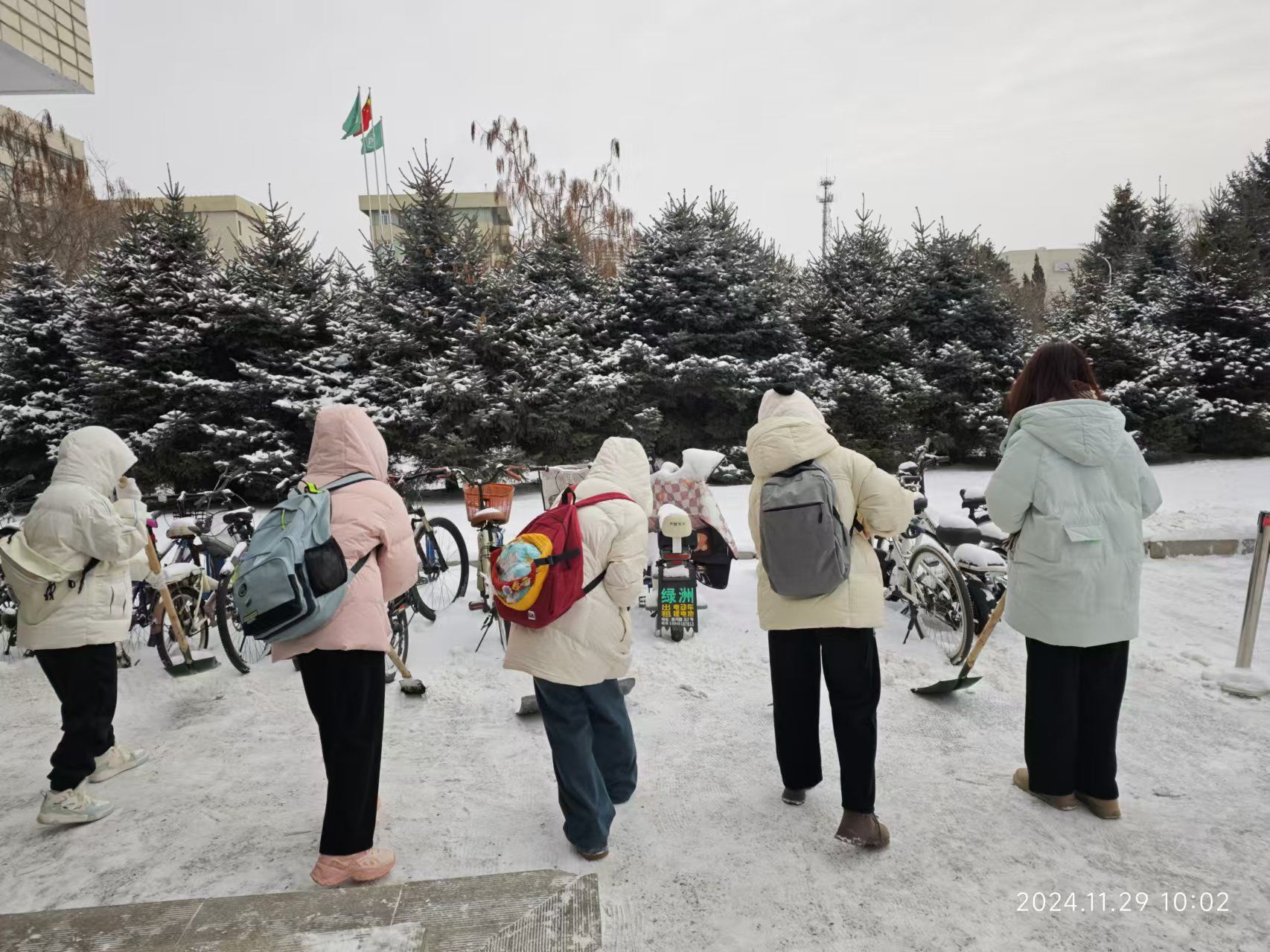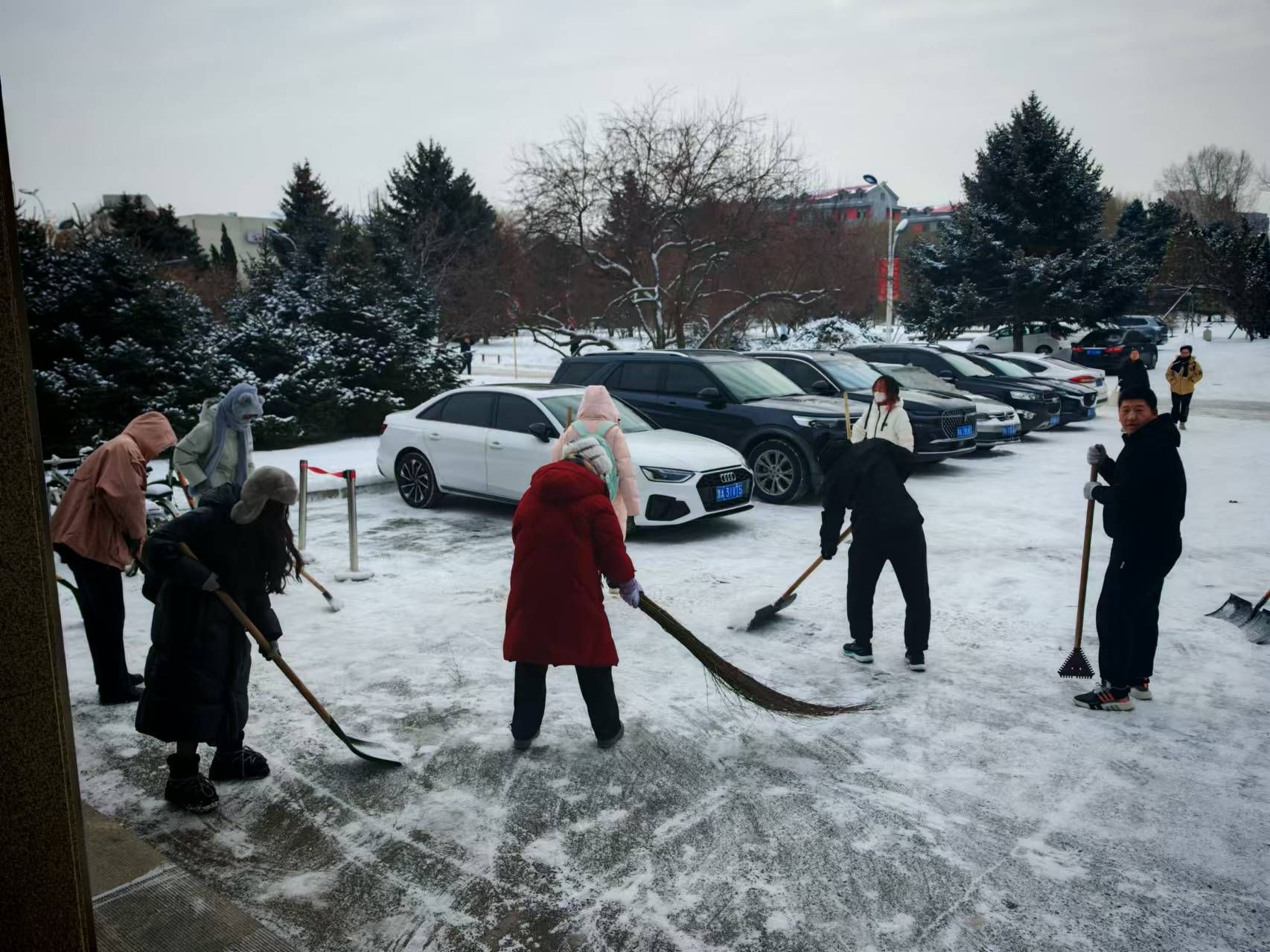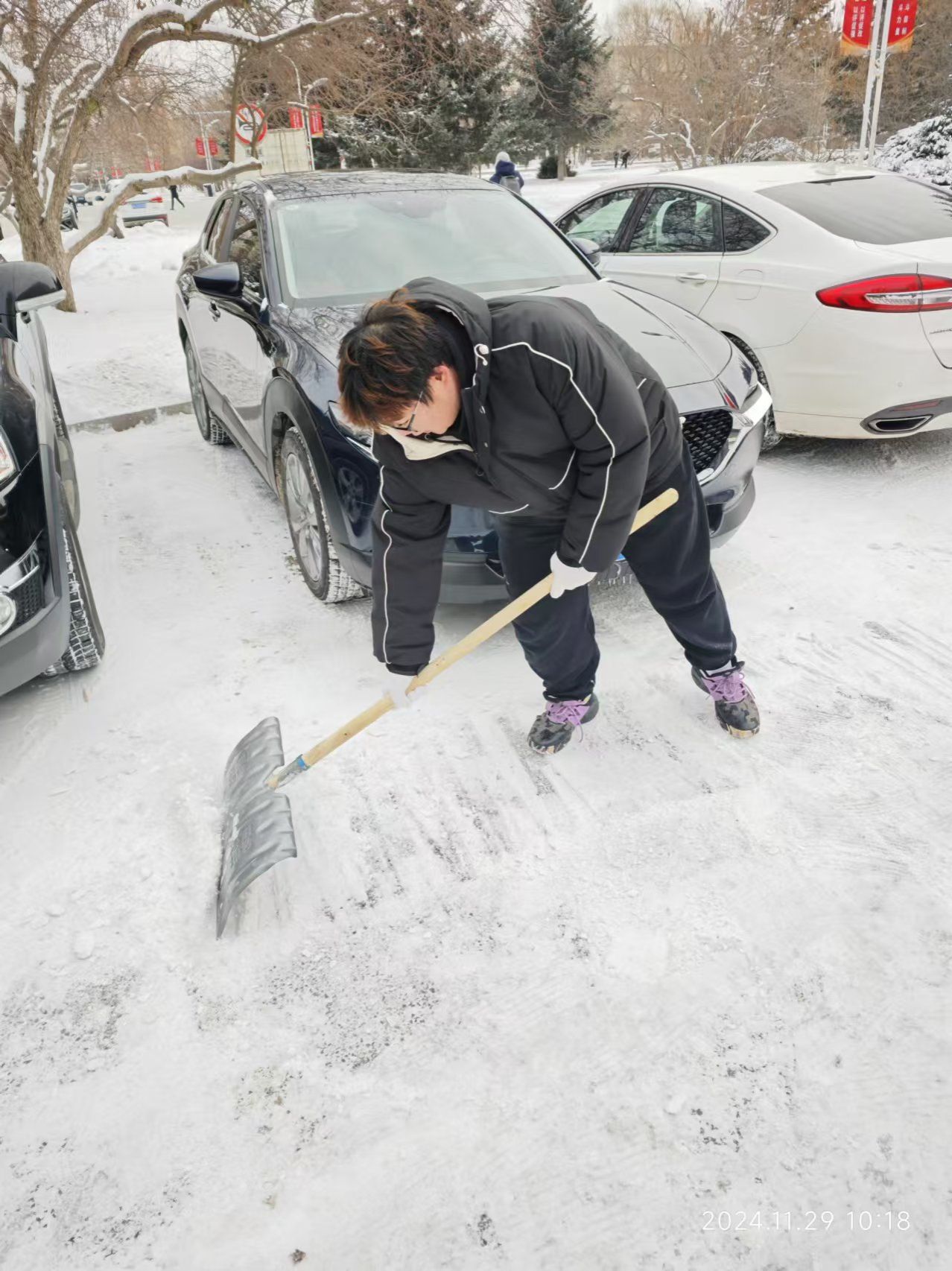 白雪纷扬落,拂晓祥光满。11月29日,动医学院师生自发组织扫雪活动,大家齐心协力,分工明确,手持工具清扫道路积雪。经过数小时奋战,牧医楼周围主要道路的积雪被清理干净,为师生们开辟出了一条条“安全通道”。