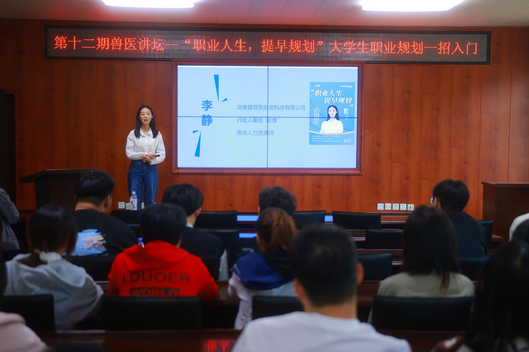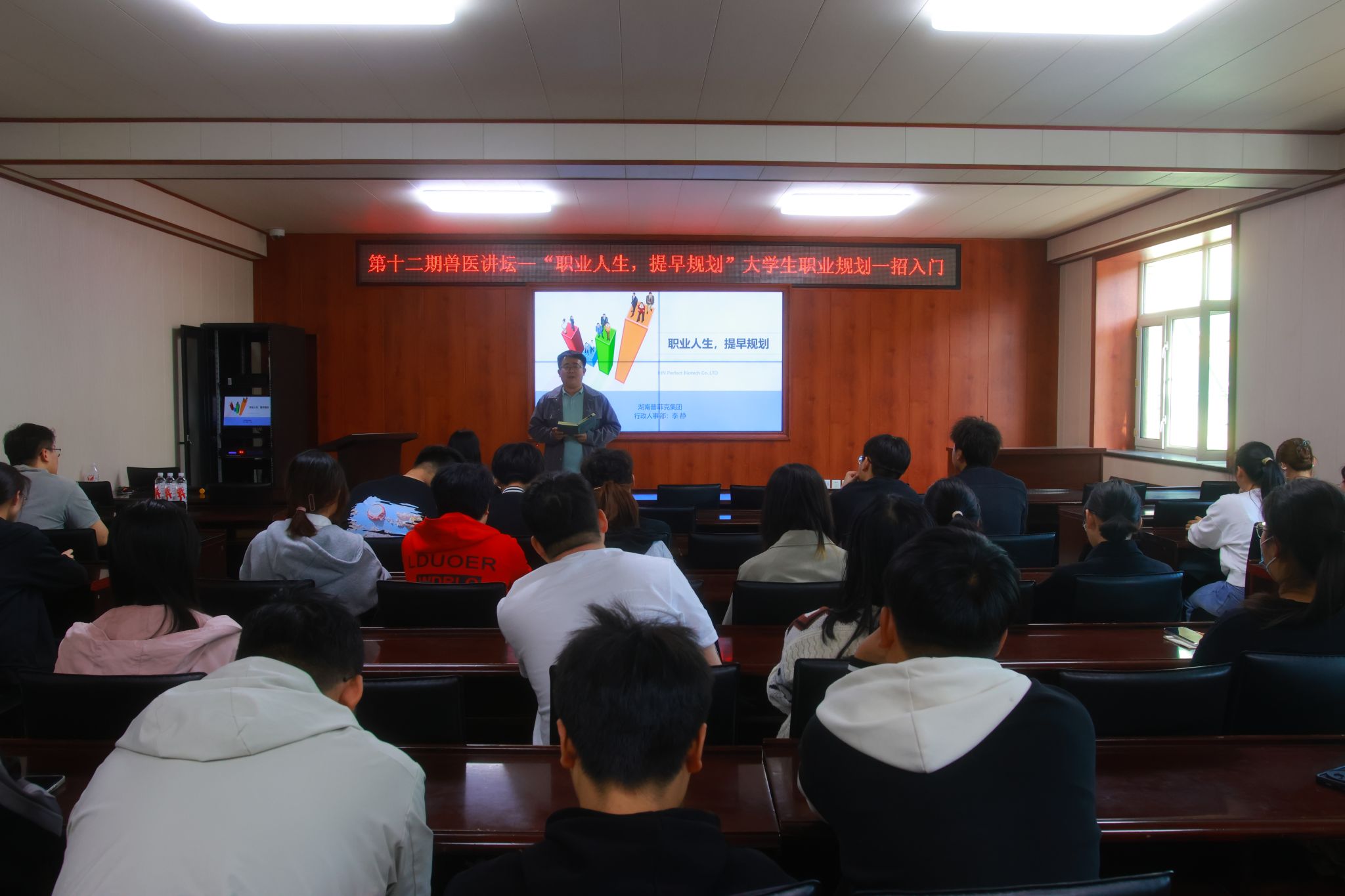 为进一步增强学生职业生涯规划意识,了解行业发展前景和就业趋势,提高就业竞争力,5月17日下午,太阳成集团tyc41183举办第十二期兽医讲坛,本次讲坛邀请了普菲克集团行政人事部经理、高级人力资源师李静作“职业人生,提早规划”大学生职业规划一招入门专题宣讲。讲坛由学院团委负责人邹云飞主持。